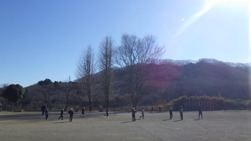 今日は比較的あたたかく、子供たちは校庭で元気に遊んでいます。