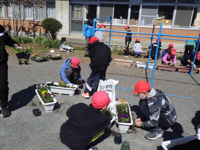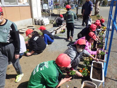 年度末、そして新しい年度に向けて全校児童が花を植えました。