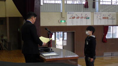 今朝は表彰朝会を実施しました。背筋の伸びた素晴らしい姿勢でした。