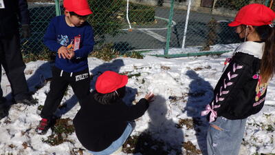 昨日、今年度初めて降った雪に子供たちはおおはしゃぎでした。
