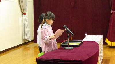 3月26日(木)に修了式を行いました。修了証を受け取る子供たちは少し緊張しながらも晴れ晴れとした表情でした。代表作文では学習の成果と今後の目標を示すことができました。校歌の指揮、伴奏を務める5年生児童の姿から頼もしさを感じました。
