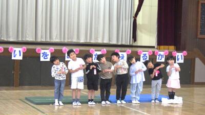 今朝は代表委員会の児童を中心に「1年生を迎える会」を実施しました。