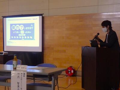 会の中では、定期健康診断結果や生活(睡眠)アンケートの結果報告を行ったほか、「眠れていますか?よりよい睡眠のための健康管理」をテーマに、竹内様より御講演いただきました。また、講演後には各校学校医・学校歯科医・学校薬剤師の先生方から専門的立場でのお話をしていただきました。