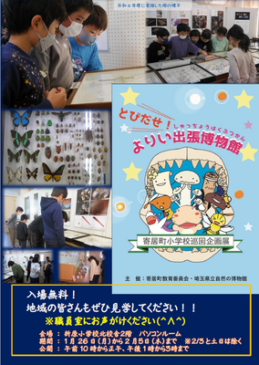 寄居町教育委員会と埼玉県立自然の博物館が主催する「寄居町巡回企画展」が1月26日から2月5日まで本校で開催されています。