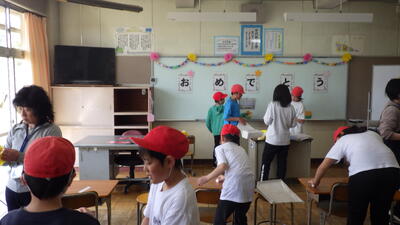 本日は、新5、6年生の子供たちが入学式の準備等のために登校してくれました。