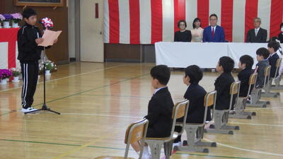 3月26日(木)に修了式を行いました。修了証を受け取る子供たちは少し緊張しながらも晴れ晴れとした表情でした。代表作文では学習の成果と今後の目標を示すことができました。校歌の指揮、伴奏を務める5年生児童の姿から頼もしさを感じました。