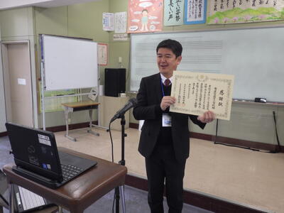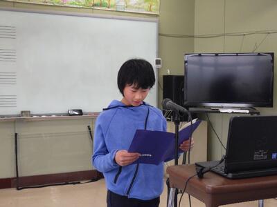 12月10日(水)は表彰朝会を実施しました。児童の立派な返事が響きました。