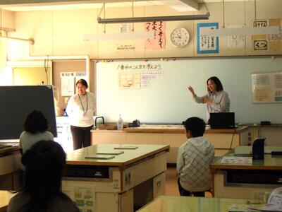 本日、5年生児童の家庭科の学習に、3名のゲストティーチャーに参加していただきました。上糸下糸のかけ方や返し縫いなど、初めてのミシンの学習でしたが、安全に楽しく学習に取り組むことができました。ありがとうございました。