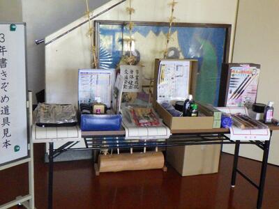 本日は学校公開日でたくさんの保護者・地域の皆様にご来校いただいています。5校時まで公開しています。多くの皆様のご来校をお待ちしています。また、昇降口ホールで書きぞめ道具を展示していますので、併せてご覧ください。