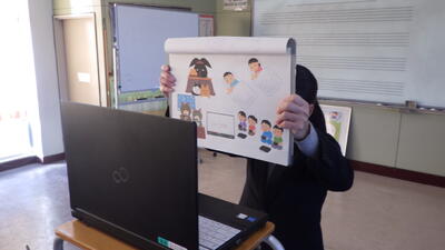本日の講演会を迎えるにあたり、講師の方へのインタビュー等をとおして教育委員会が作成した資料を活用して、事前に道徳の授業を実施しました。