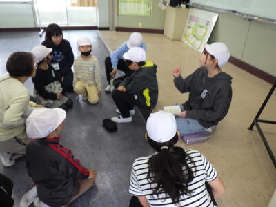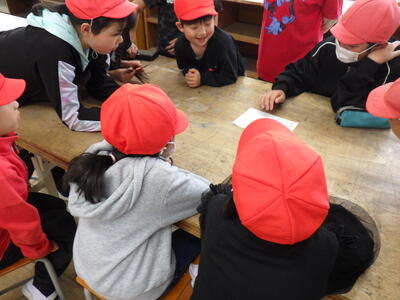 本校では、運動会などの学校行事、清掃活動、休み時間の遊びなど様々な場面で1年生から6年生までの異学年で編制した「たてわり班」で活動します。今日はその初顔合わせで、遊びの計画を話し合いました。