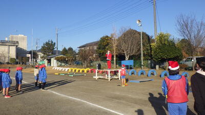 今朝は、2学期最後のさわやかタイムを実施しました。サンタクロース(担当と運動委員)と一緒に短縄跳びやマラソンに取り組みました。